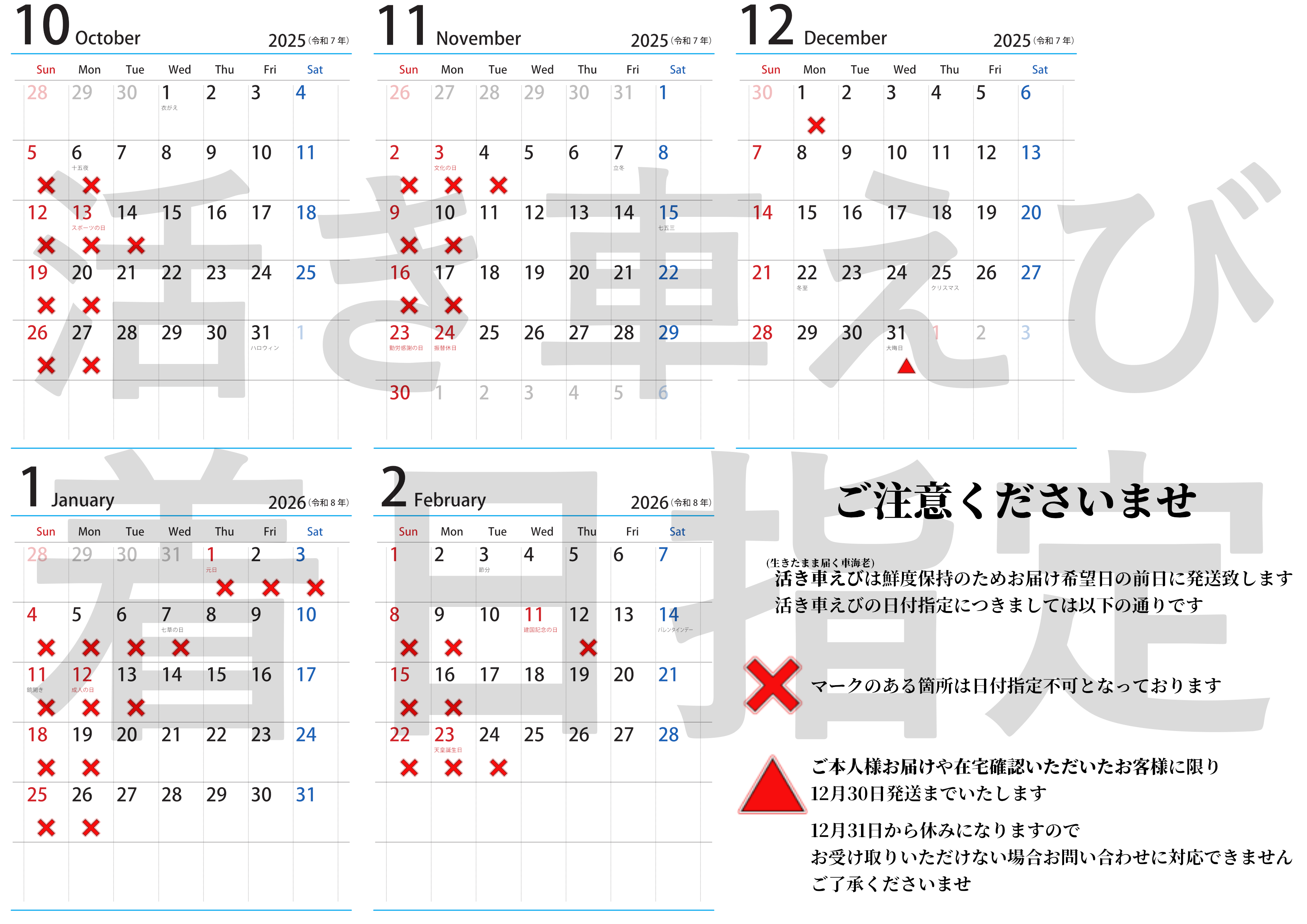 ※表示の尾数は目安となっております。時期、水揚げ状況により尾数が変動することがございます。